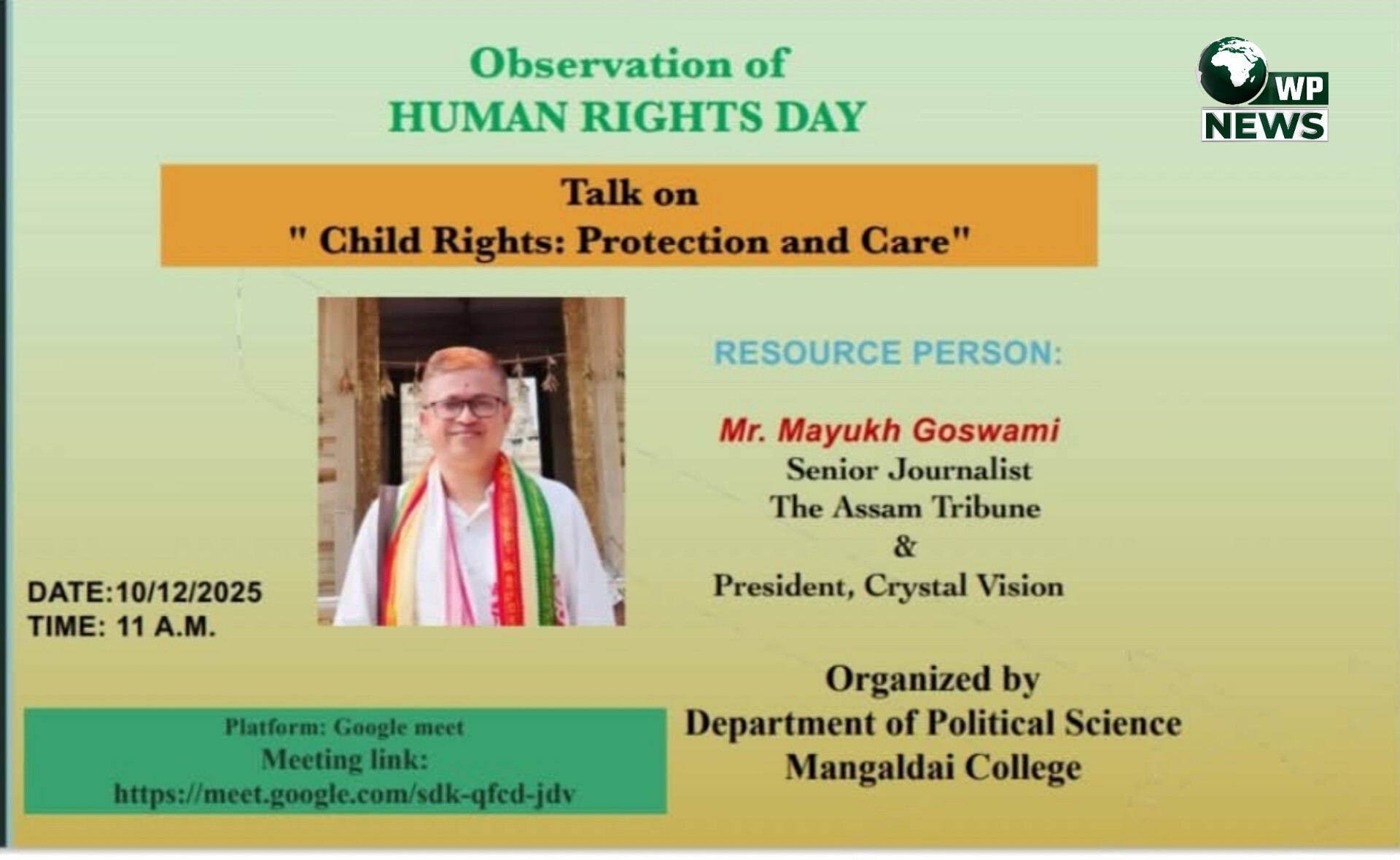 মানৱ অধিকাৰ দিৱস উপলক্ষে বিশেষ আলোচনা সভা